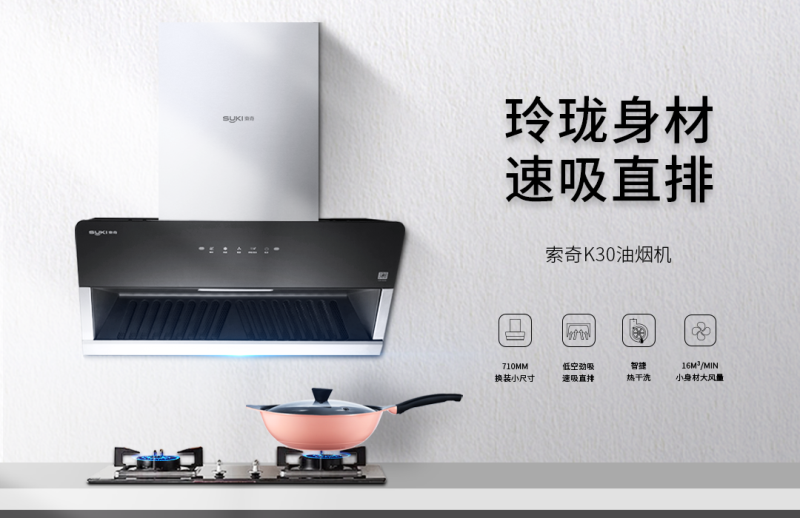 索奇新品K30油煙機,710mm玲瓏身材,簡直就是小空間廚房的“福音”,HOLD住百變廚房。