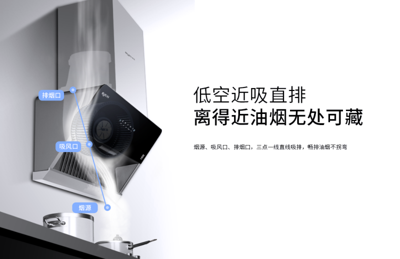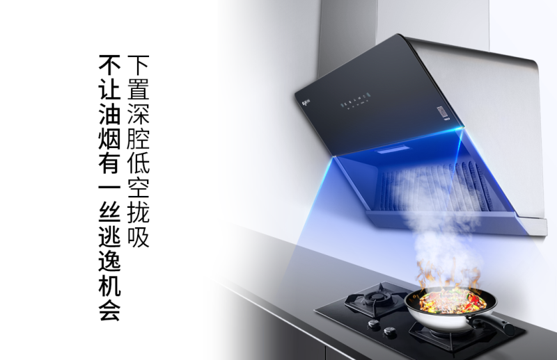 配合下置深腔低空攏吸,離得近吸得更凈,不讓油煙有一絲逃逸機會。